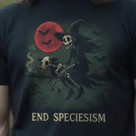 Bist du bereit, den Speziesismus magisch zu beenden und alle Lebewesen gleich zu behandeln? Dieses T-Shirt macht deine Antwort sichtbar. Der klare Claim End Speciesism trifft mitten ins Herz einer Szene, die Humor, Subkultur und Haltung verbindet. Keine langen Reden – ein Blick auf dein Brustmotiv genügt und das Gespräch beginnt von selbst: Warum lieben wir manche Tiere, während wir andere ausblenden? Genau hier setzt dieses Shirt an – freundlich, direkt, kompromisslos.
